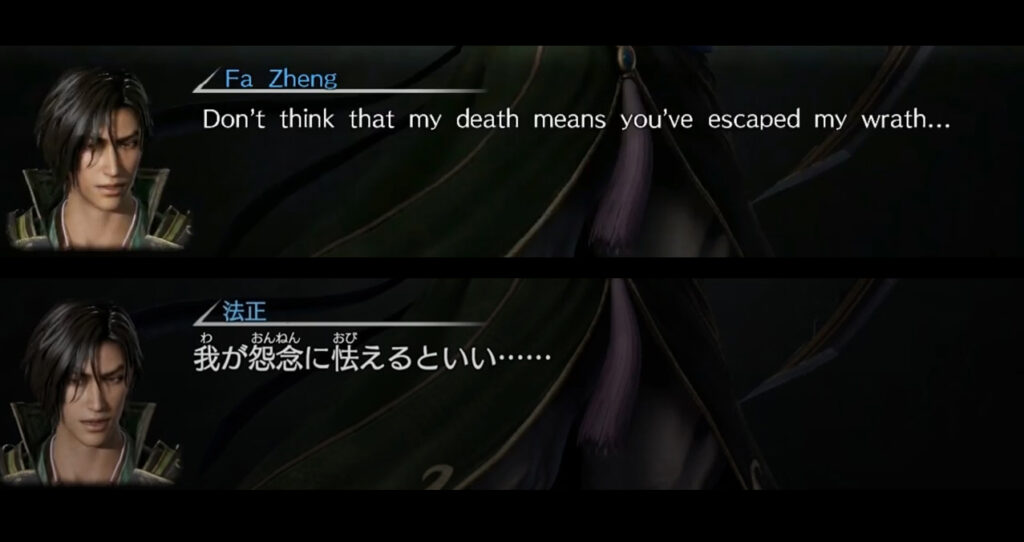 Mood. Fa Zheng’s death quote from Dynasty Warriors 9/Dynasty Warriors 9 Empires. In the English version, he says, “Don’t think that my death means you’ve escaped my wrath…”